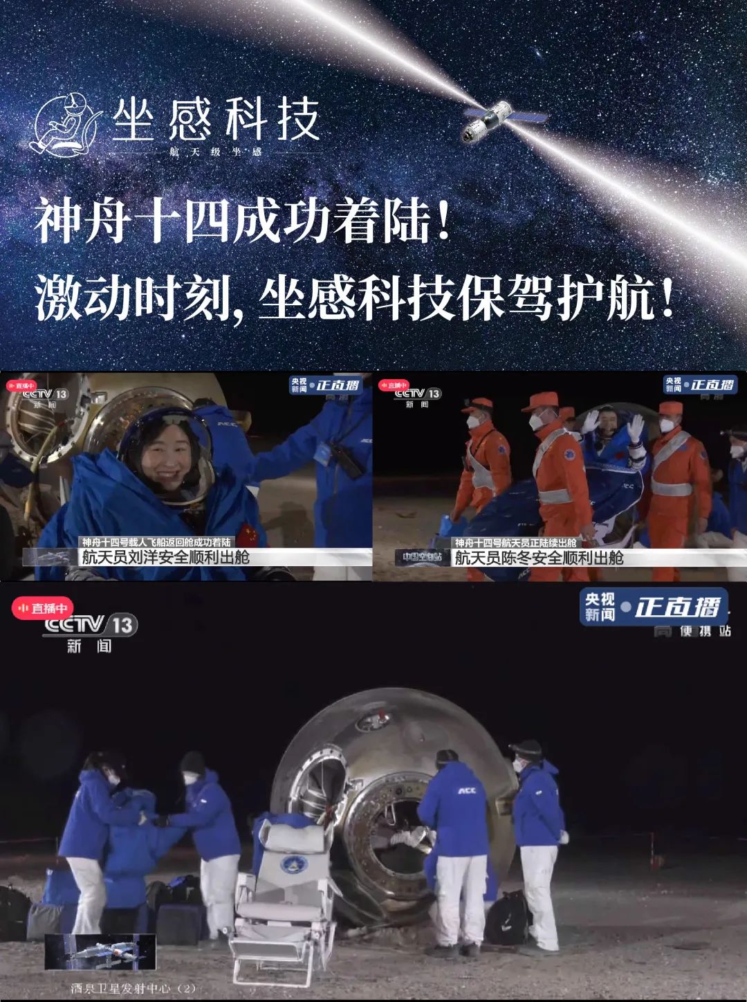 坐感科技,再次為航天英雄“保駕護航”——神舟十四航天員健康出艙,今晨抵達北京